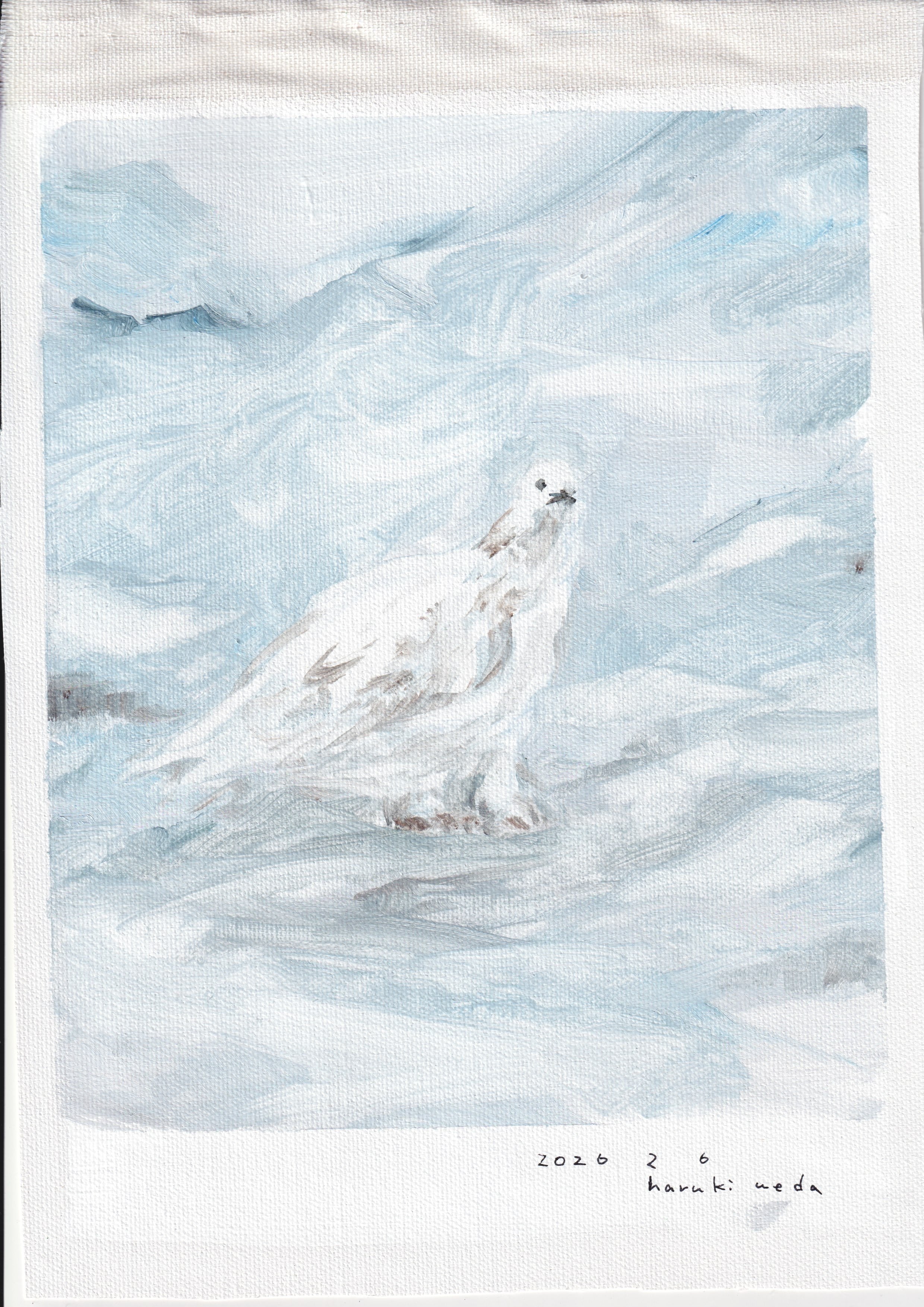 キャンバス地に油彩ドローイング